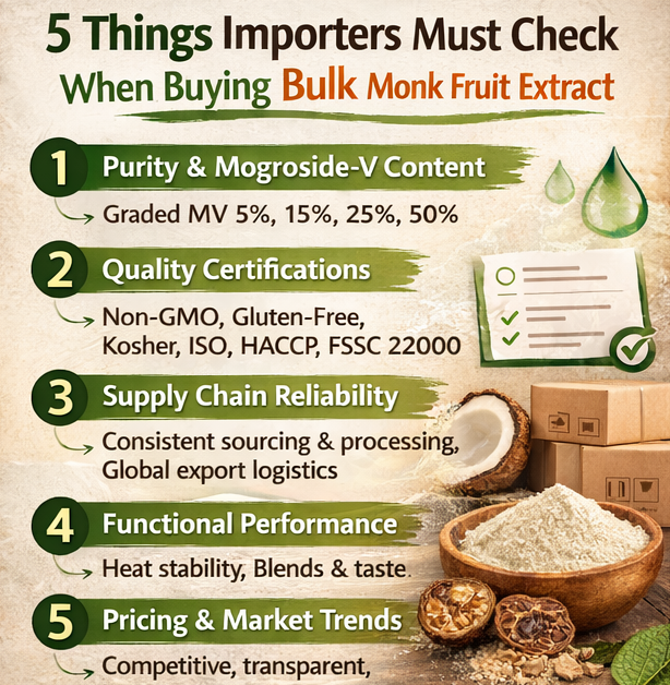 Here are the 5 most important things importers should check when buying Monk Fruit Extract in bulk.