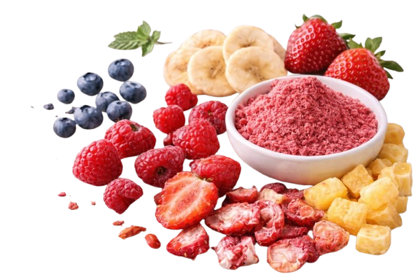 Ingredients Premium freeze-dried fruit powders and pieces with superior color, aroma, and nutrient retention for high-value formulations.